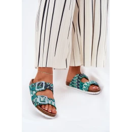 Vzorované dámske papuče z textilného materiálu osadené na korkovej platforme, ktoré spájajú pohodlie s módnym vzhľadom. Dva remienky s prackami zdobené flitrami im dodávajú výnimočný charakter. Profilovaná semišová stielka zaručuje pohodlie počas celého dňa. Tieto papuče budú skvelou voľbou na letné dni, perfektne sa hodia k šatám, sukniam alebo šortkám a každému outfitu dodajú ľahkosť a lesk.