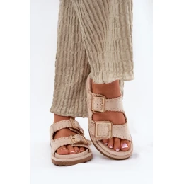 Dámske papuče z ekologického semišu, ktoré upútajú pozornosť ozdobným lemovaním a efektnými prackami na prednej strane. Pohodlie pri nosení zaisťuje tvarovaná stielka, ktorá sa dokonale prispôsobí tvaru chodidla. Tento módny model je skvelou voľbou na letné dni - ideálny na mestský štýl aj na dovolenku!