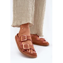Dámske šľapky z ekokože, ktoré upútajú na prvý pohľad ozdobným lemovaním a efektnými prackami na prednej strane. Pohodlie pri nosení zaisťuje tvarovaná stielka, ktorá sa dokonale prispôsobí tvaru chodidla. Tento módny model je skvelou voľbou na letné dni, ideálny na mestskú štylizáciu aj dovolenkové výlety!