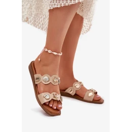Tieto dámske sandále vyrobené z ekokože sú štýlovou ponukou na teplé dni. Sedia na plochej podrážke a poskytujú pohodlie počas celého dňa. Jedinečné zlaté, morské zdobenie priťahuje pozornosť a dodáva im nezameniteľný charakter. Mäkká stielka zaručuje pohodlie a ich elegantný vzhľad sa dokonale hodí k letným štýlom, pričom spája funkčnosť s módnym akcentom.