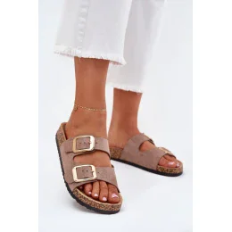 Dámske sandále z ekokože na korkovej podrážke sú štýlovou voľbou na teplé dni. Dva nastaviteľné remienky so zlatými prackami im dodávajú elegantný charakter a zároveň zaručujú pohodlie a ideálne prispôsobenie. Skvele sa hodia na každodenné nosenie, spájajú pohodlie s módnym vzhľadom, ideálne na prechádzku alebo dovolenku.