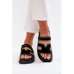Dámske sandále z ekologického semišu. Umiestnené na platforme. Ozdoba im dodáva jemný charakter a zapínanie na suchý zips umožňuje jednoduché prispôsobenie sa nohe, čo zaručuje pohodlie počas celého dňa. Skvelé na letné dni, výborne sa hodia k ležérnym a každodenným outfitom.