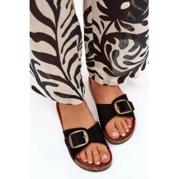 Dámske sandále vyrobené z ekokože. Umiestnené sú na korkovej platforme. Majú pracku s nastaviteľným remienkom, ktorý umožňuje dokonalé prispôsobenie sa nohe. Profilovaná stielka poskytuje pohodlie počas celého dňa a vďaka jednoduchému vzhľadu sa skvele hodia na každodenné štylizácie. Sú ideálne na letné dni, hodia sa k šatám, sukniam alebo nohaviciam a prinášajú ľahkosť a štýl do každej kreácie.