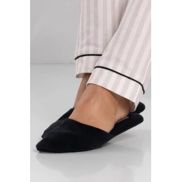 Černé dámské pantofle Momenti jsou harmonickým spojením minimalistické elegance, pohodlí a pečlivě vybraných materiálů. Vytvořeny pro ženy, které oceňují nejvyšší kvalitu, vynikají provedením z exkluzivní látky Premium Velvet Matt. Její sametově měkká, matná struktura dodává pantoflím šlechetný, nadčasový charakter, skvěle zapadající do estetiky moderní domácí obuvi. Hladký, decentní tvar zdůrazňuje ženskost, zachovávaje přitom elegantní minimalismus. Vnitřek pantoflí byl pečlivě vypikován, což zajistí chodidlům příjemné obalení a vysoký komfort nošení. Elastická podrážka usnadňuje volné pohyby a použité materiály se vyznačují zvýšenou odolností proti opotřebení a působení světla, díky čemuž si pantofle udržují svůj estetický vzhled dlouho. Produkt splňuje přísné bezpečnostní normy, potvrzené certifikátem REACH. Celé je baleno v elegantní krabičce, což činí pantofle Momenti skvělou volbou i jako dárek. P