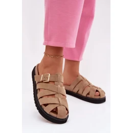 Štýlové dámske sandále z ekokože sú módnou a pohodlnou ponukou na teplé dni. Model umiestnený na platforme jemne zvýrazňuje postavu a poskytuje pohodlie pri nosení. Remienky zdobené zlatou prackou dodávajú celku elegantný charakter a vytvárajú efektný akcent. Tieto sandále sú ideálne na každodenné aj štylizované letné outfity.