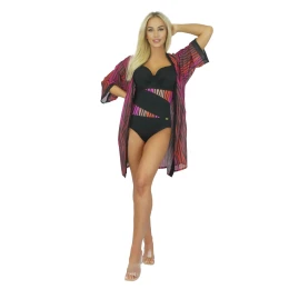 Plážové šaty 11D80SZ 31 SELF - vyrobené z jemnej vzdušnej tkaniny - so vzorom - trojštvrťové rukávy - odolné voči UV žiareniu - nemačkavý materiál