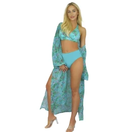 Pareo šátek 14D81SZ 36 SELF - zelená barva - z jemné vzdušné látky - se vzorem - odolná proti UV záření - nemačkavý materiál - vázání v pase
