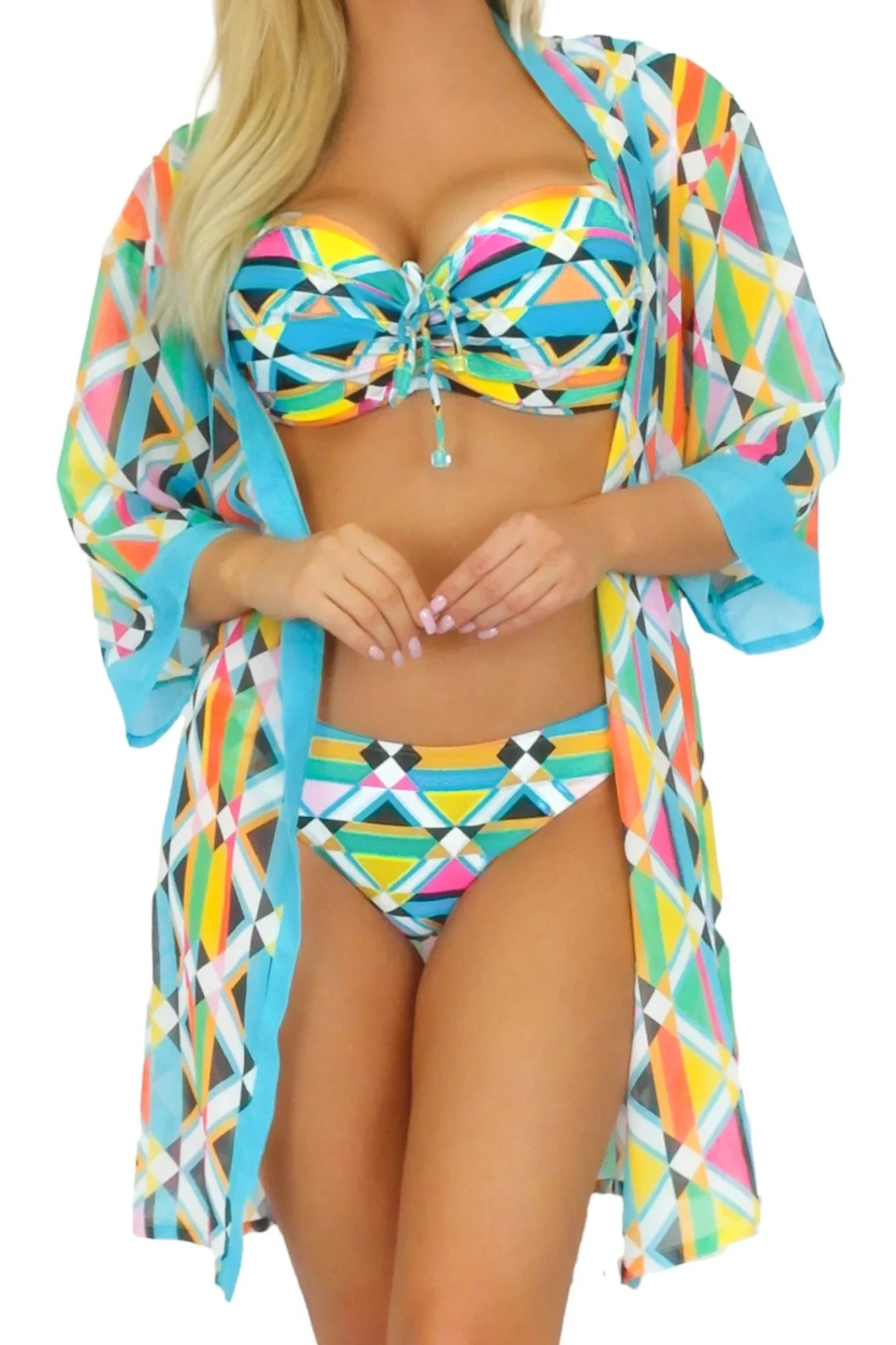 Pareo šátek 11D80SZ 34 SELF - z jemné vzdušné látky - se vzorem - tříčtvrteční rukávy - odolná proti UV záření - nemačkavý materiálMateriálové složení: 100% polyester