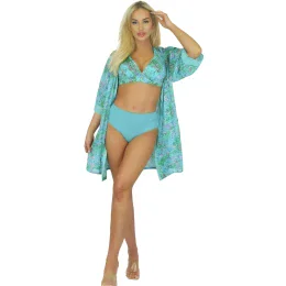 Plážové šaty 11D80SZ 36 SELF - zelené - z mäkkej vzdušnej tkaniny - so vzorom - trojštvrťové rukávy - odolné voči UV žiareniu - nemačkavý materiál
