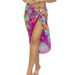 Pareo šatka D95CH 30 SELF - viacfarebná - z mäkkej vzdušnej tkaniny - so vzorom - odolná voči UV žiareniu - nemačkavý materiál - zapínanie na trblietavú pracku