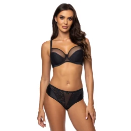 Biustonosz marki PariPari. Model Laila Maxi. Posiada druty, które podpierają piersi odpowiednio je kształtując. Produkt posiada regulowane ramiączka bez możliwości ich odpięcia. Haczyki do ramiączek metalowe. Biustonosz zapinany na haftki. Miejsce zapięcia: tył. Produkt został wykonany z 80% poliamid, 20% elastan. Produkt damski.