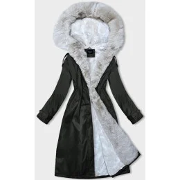Dámska zimná bunda s kožušinou army-beige (B557-11046)
