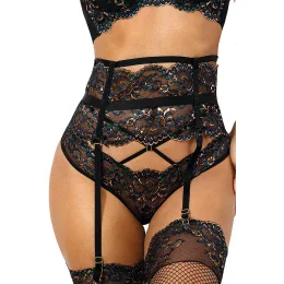 Rozprávkové vzory z trblietavej modrej čipky sú jedinečným doplnkom pre každú ženu. Zoznámte sa s naším bestsellerom - podväzkovým pásom V-10362, ktorý je vyrobený z elastickej čipky, obopína bruško a chrbát podopiera systém popruhov zdobených kovovými doplnkami v zlatej farbe. Má nastaviteľný obvod na chrbte, zapína sa na dvojitý háčik a očko a bočné kostice.