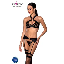 Nočná bielizeň Passion, model Hima Set. Výrobok je vyrobený zo 60 % polyuretánu, 40 % polyesteru. Miesto zapínania: na chrbte. Nočná bielizeň sa zapína na háčiky a očká. Má drôtiky, ktoré podporujú prsia a správne ich tvarujú. Výrobok má nastaviteľné ramienka. Pás s ramienkami. Výrobok je ženský. Ramienka sú nastaviteľné.
