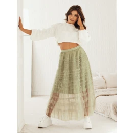 Tylová sukňa v maxi dĺžke je neprehliadnuteľným trendovým kúskom, ktorý vďaka módnej dĺžke, elastickému pásu a zaujímavému tylovému prešívaniu vytvorí štýlový celok. Je ideálna pre elegantný aj ležérny vzhľad, k dispozícii v troch farbách.