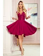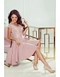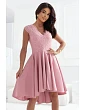 PATRICIA - Dámske šaty v púdrovo ružovej farbe s dlhším zadným dielom a čipkovým výstrihom 300-1