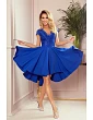 Patricia - exkluzívny asymetrické dámske šaty s dlhším zadným dielom, krátkymi rukávmi, výstrihom a čipkou.
