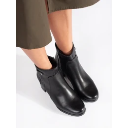 Pěkné černé kotníčkové boty dámské na širokém podpatku