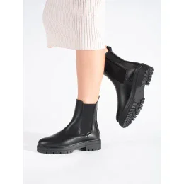 Pěkné dámské kotníčkové boty černé na plochém podpatku