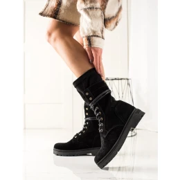Pěkné kotníčkové boty černé dámské na plochém podpatku