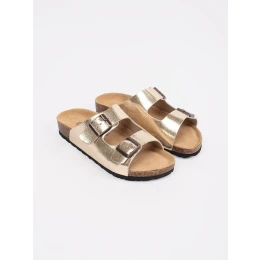 Pěkné zlaté dámské nazouváky na plochém podpatku