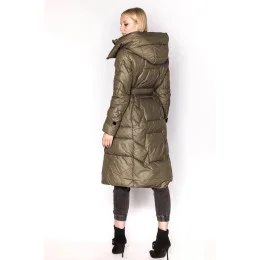 Péřová bunda v olivové barvě se stojáčkem a kapucí model 21244376 - Ann Gissy