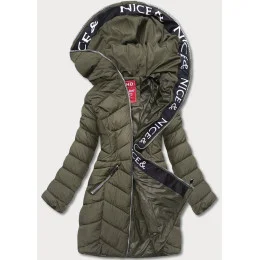 Perová dámska bunda v khaki farbe pre prechodné obdobie (2M-001)