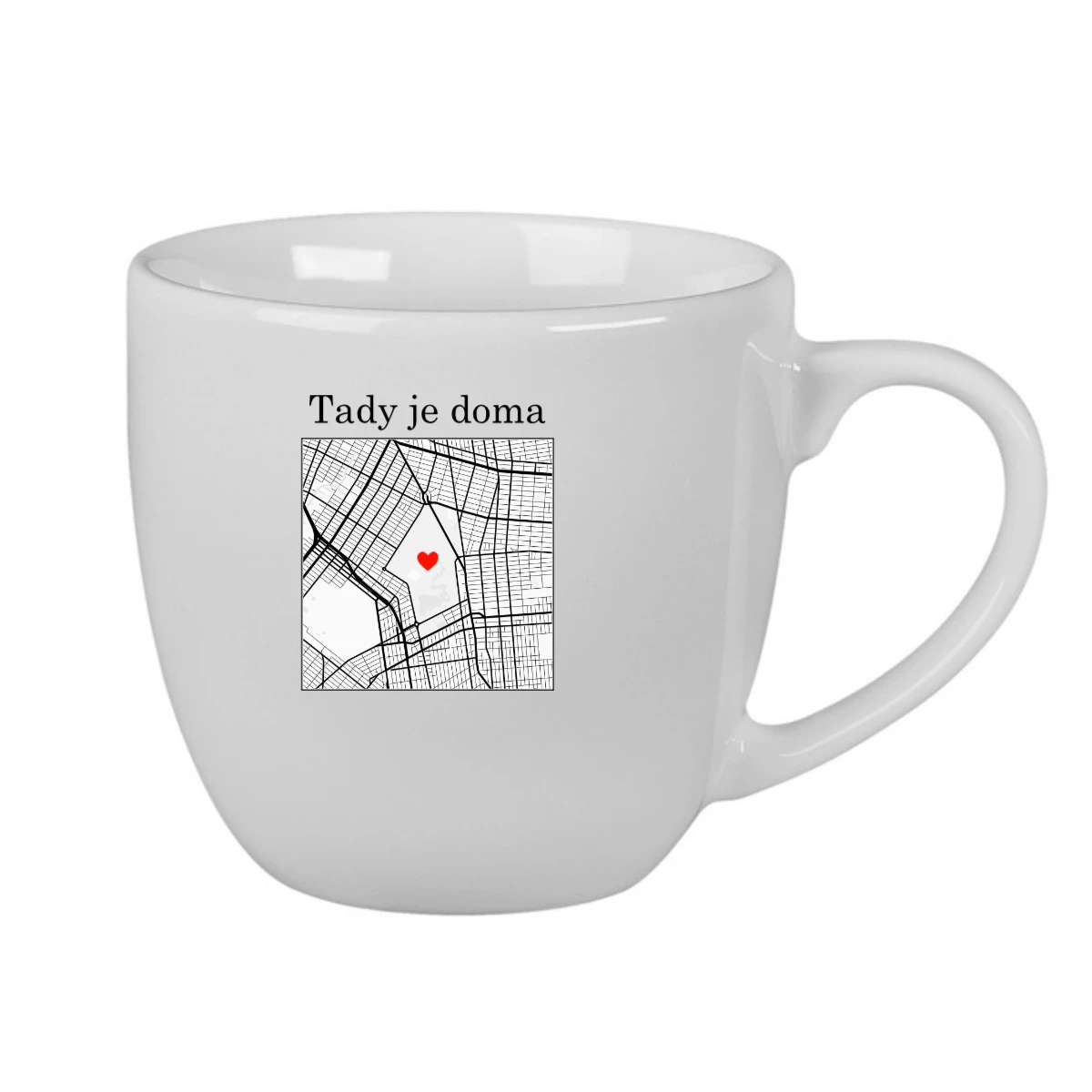 Tento keramický bílý hrnek o objemu 400 ml si můžeš přizpůsobit mapou konkrétní adresy, která pro tebe něco znamená.