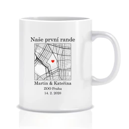 Tento keramický bílý hrnek (300 ml) si můžeš přizpůsobit mapou konkrétní adresy, která pro tebe něco znamená.