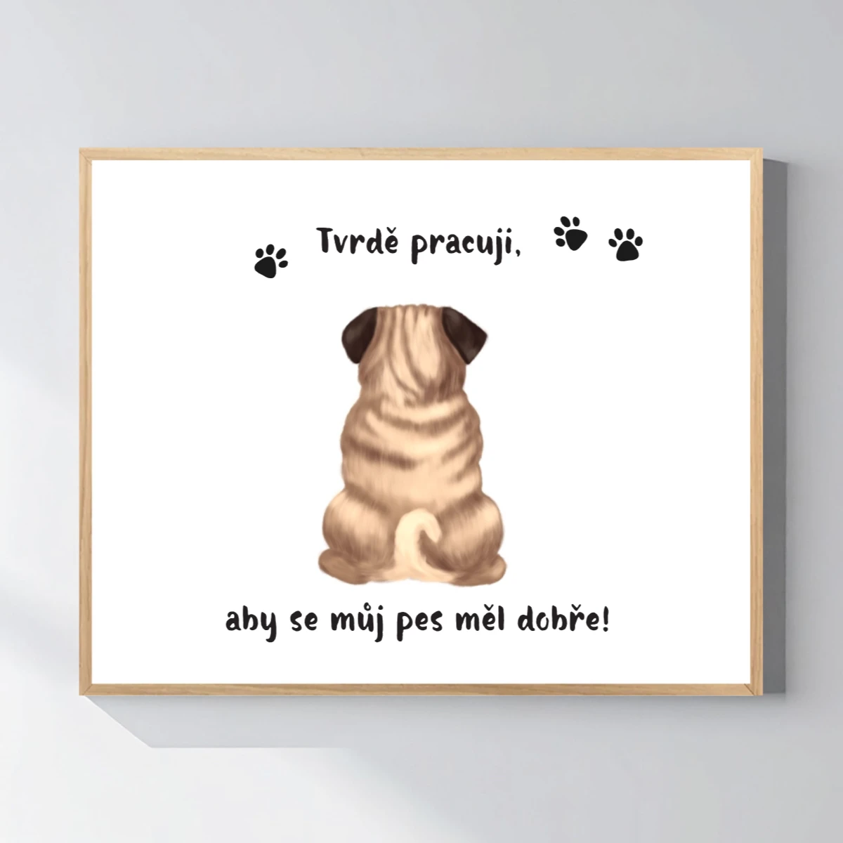 Originální dekorace pro všechny milovníky čtyřnohých parťáků. Plakát s hrdým nápisem „Tvrdě pracuji, aby se moje smečka měla dobře“ vystihne každého, kdo ví, že domov tvoří právě jeho chlupatá smečka.