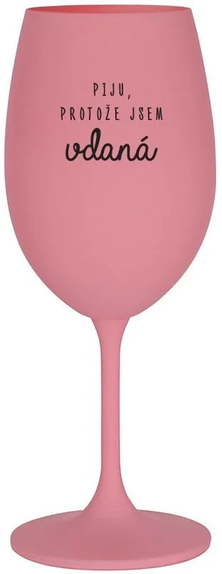 PIJU, PROTOŽE JSEM VDANÁ - růžová sklenice na víno 350 ml