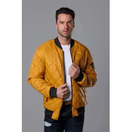 Tmavo žltá prešívaná pánska bunda typu "bomber" (MY01-23)