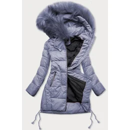 Dámska prešívaná zimná bunda s kapucňou vo farbe heather (7690)