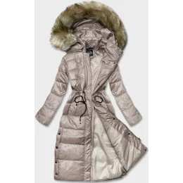 Dlhá dámska prešívaná bunda v ťavej farbe (H-201)
