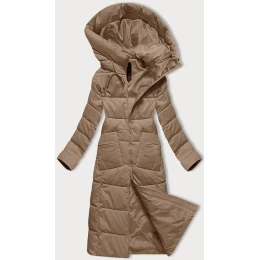 Tmavobéžová dámska prešívaná dlhá zimná bunda Libland (7767)
