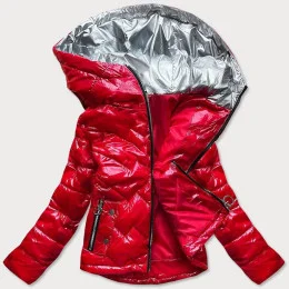 Červená prešívaná dámska bunda s kapucňou (R9562)