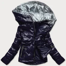 Tmavo modrá prešívaná dámska bunda s kapucňou (R9562)