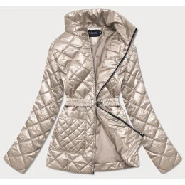 Béžová prešívaná dámska bunda s opaskom (BH2208)