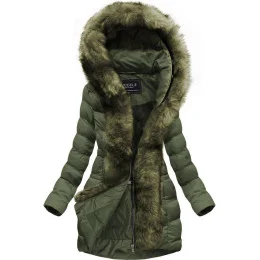 Dámska prešívaná zimná bunda v khaki farbe s kapucňou (w749-1)