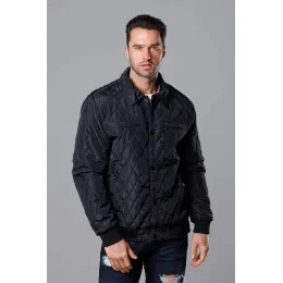 Čierna pánska prešívaná bunda s golierom (58M13080-392)