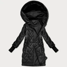 Prešívaná bunda s kapucňou a trapézovým strihom čierna (T2-2290#-1)
