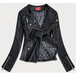 Čierna prešívaná bunda ramoneska z eko kože (Q-059)