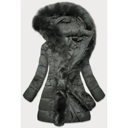 Dámska prešívaná zimná bunda s kapucňou khaki (aura)