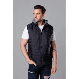 Čierna pánska prešívaná vesta s kapucňou (8M983-392)