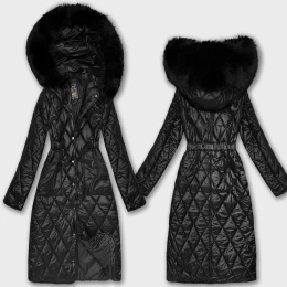 Čierny prešívaný kabát s kapucňou Libland (LD-7768)
