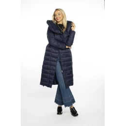 Prešívaný kabát s vysokým golierom a kapucňou tmavomodrý (AG1-J9062C)