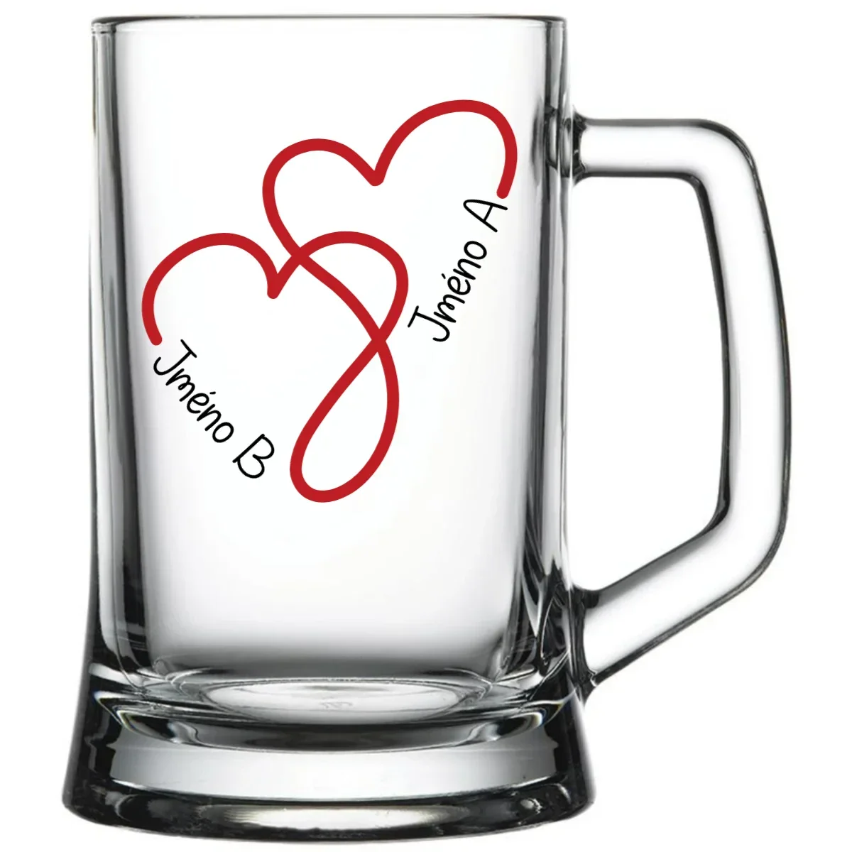 I láska se dá oslavit i pivem. 🍻❤️ Originální pivní sklenice z kvalitního skla o objemu 500 ml s motivem propletených srdcí a možností doplnit dvě jména podle Vašeho přání. Skvělý dárek pro zamilované, svatební dar, nebo jako stylová připomínka výjimečného vztahu.