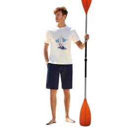 Wymiary piżamy w rozmiarze M mierzone na płasko: t-shirt: szerokość pod pachami - 55 cm, długość całkowita - 72 cm, szorty: szerokość w pasie - 33 cm (na płasko), szerokość w pasie - 64 cm (po rozciągnięciu), długość całkowita - 56 cm.