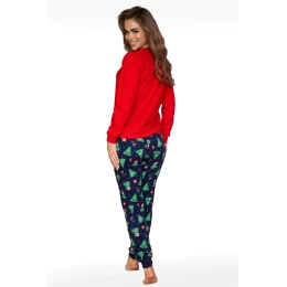 Dámské pyžamo z měkké bavlny, tričko s dlouhými rukávy a jemným potiskem na přední straně, dlouhé vzorované kalhoty s výstřihem, manžetami a spodním lemem s pohodlnou šňůrkou v pase. Pyžamo je baleno v krabici.