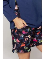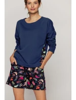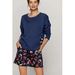 Pohodlný komplet - blúza a šortky, ktoré sú vyrobené z veľmi kvalitnej a odolnej teplákoviny. Komplet je komfortný a má módny dievčenský vzhľad. Môžete ho nosiť ako domáci odev, ale aj ako oblečenie pre turistiku a šport. Blúza má dlhé rukávy, okrúhly výstrih a na bokoch vzorované vsadky. Šortky sú krátke, majú pohodlné vrecká a na bokoch rázporky.